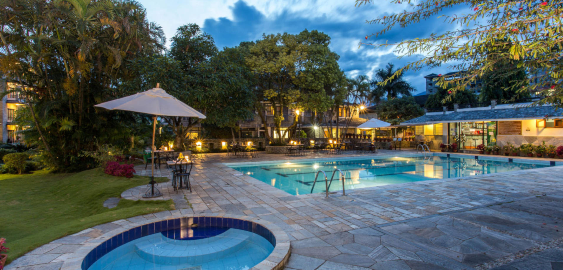 Een prachtig hotel met zwembad, wederom op loopafstand van het toeristische centrum van Pokhara. Naast het zwembad heeft dit hotel ook een grote tuin en spa faciliteiten. Een fusion restaurant en regelmatig culturele shows in de avond. 's Ochtends een luxe ontbijt buffet in het restaurant of op de patio. Ruime schone kamers met balkon en ook familie kamers opties. En natuurlijk opnieuw prachtig uitzicht op de bergen. Vooral als je ook komt om te relaxen of nog even wilt bijkomen na een trekking kan dit een heerlijke plek zijn.