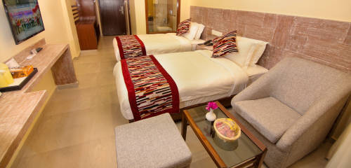 De kamers zijn comfortabel, modern, elegant en stijlvol met eigen balkon en rain douche. In het restaurant op de begane grond wordt iedere ochtend een prima ontbijt geserveerd en vanaf het dakterras heb je schitterend uitzicht over Pokhara en het Annapurna geberte (ook zonsondergang!).